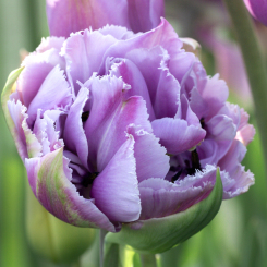Appearing almost sharp to the touch, Fringed tulips are amongst the most unique varieties available – this grouping will surely bring forth the curiosity of those passing by. Relatively new to the lineup of world tulips, these varieties are increasing in popularity and tend to have a fairly long bloom life. The shorter types are good choices for forcing and pots, while all of the types add a nice bit of later season color to flower beds. Since the double + fringed blooms in this grouping will hold water between the petals and inside the flower, gardeners should look to plant them in protected or covered areas.
